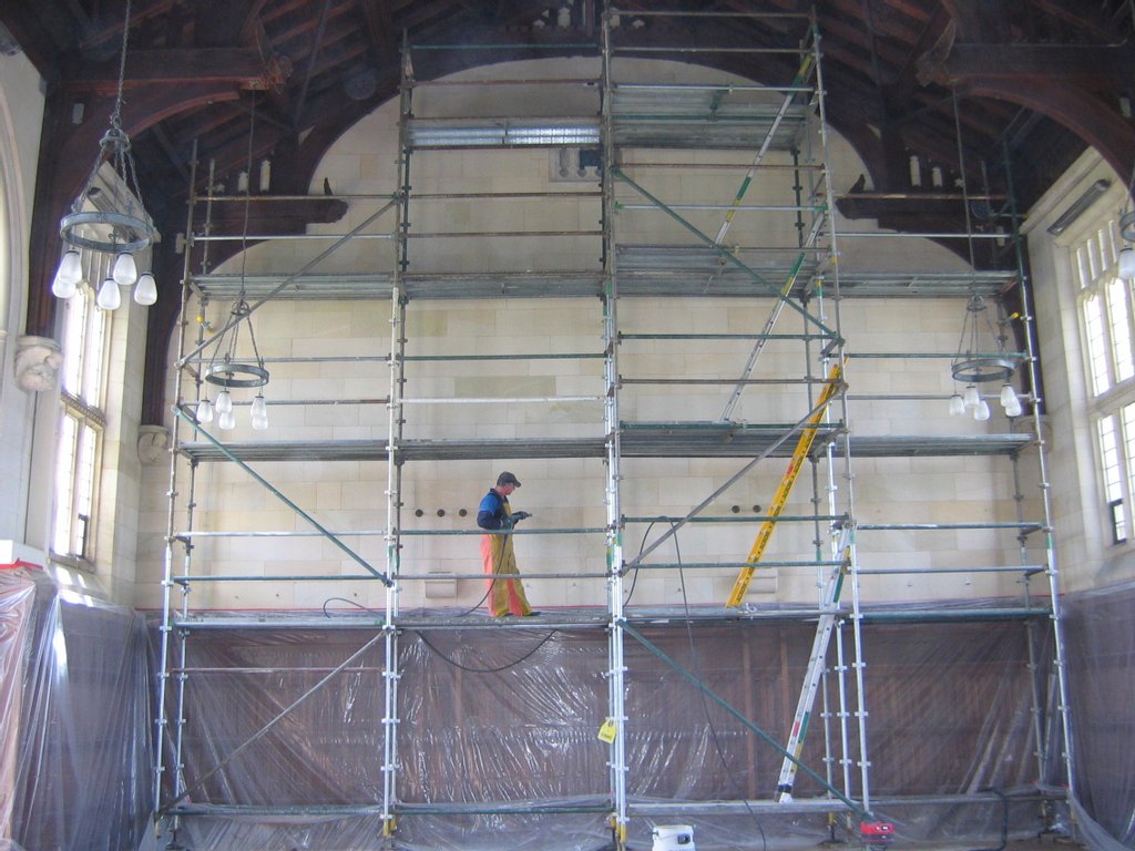 JetX the licensed operator of the VESS™ Restoration Cleaning System cleaned the inside of the dining hall oamaru stone walls in 2005-2006. The walls had not been cleaned since it was built in 1914. JetX completed this job in conjunction with Goldfield Stone who replaced the deteriorating stone and McTavich Painters & Restorers who cleaned and stained the woodwork. Christs College was awarded a Conservation & Restoration Award for the dining room restoration. This was a special job as we were working inside and had to contain and control the residual water. As the oamaru stone was inside in this case the restoration work JetX did brought up the surface to an almost new look.